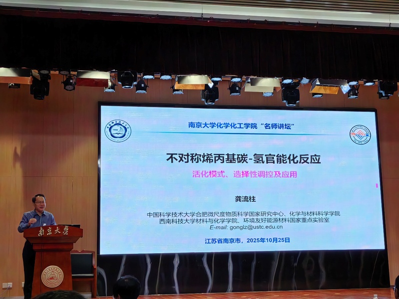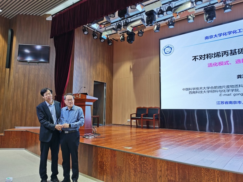 2024年10月25日上午,中国科学技术大学龚流柱教授应邀作为太阳集团tcy8722“名师讲坛”嘉宾,为公司师生作了题为“不对称烯丙基碳-氢官能化反应”的精彩报告。报告由公司党委书记朱成建教授主持。首先,朱成建书记介绍了龚流柱教授的简历和成就,并向龚流柱教授颁发了“名师讲坛”纪念铭牌。公司多位教师、员工参加了此次学术报告会。