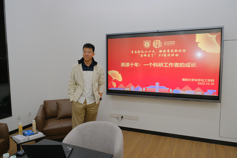 2022年10月19日,太阳集团tcy8722在仙林校区化学楼员工之家举办了首轮“青春献礼二十大,强国有我新征程——导师来了2.0”系列活动,本次活动邀请了公司2011届本科员工、西湖大学理公司孙磊博士,为同学们作主题为“美漂十年:一个科研工作者的成长”的讲座。此次活动由太阳集团tcy8722员工会承办,公司党委副书记李兴华、学工办部分教师和30余名本硕博同学参加了此次活动。