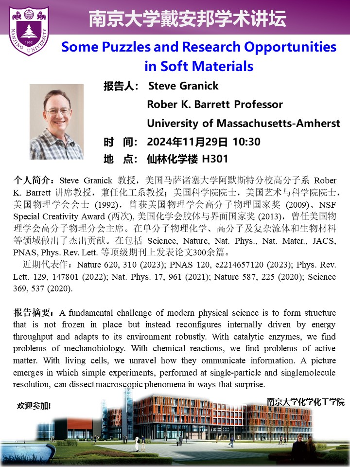 11月29日戴安邦学术讲坛-Steve Granick:Some Puzzles and Research Opportunities in Soft Materials