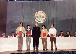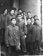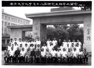 1980年元旦,化学系系主任等和78届研究生欢送薛奇等出国留学在校门口留影