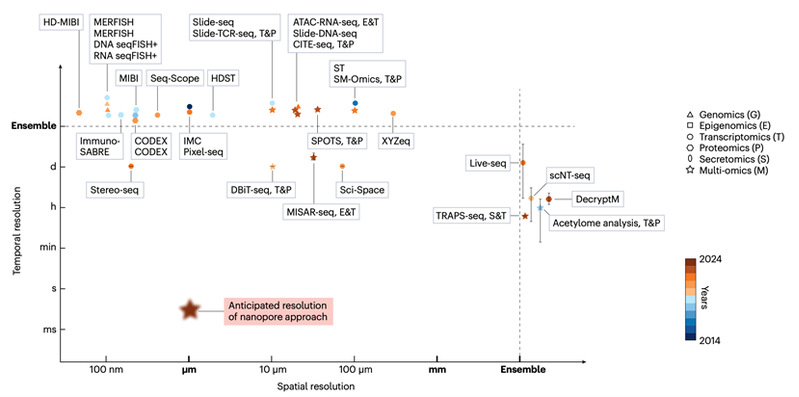 近年来,单细胞组学和空间组学的快速发展,使组学研究的分辨率达到了单细胞乃至亚细胞水平,揭示了不同组织区域的分子特征及其在疾病中的空间相关性。然而,这些技术主要用于静态分析,难以全面解析生物系统在其他维度的异质性,例如单分子层面的差异性和动态时序特征。事实上,生物过程本质上具有动态性,分子水平的异质性和瞬态过程对生命活动的调控起着至关重要的作用。因此,亟需一种能够结合单细胞、空间分辨率与时间动态的技术,以更全面深入地理解生命过程。
