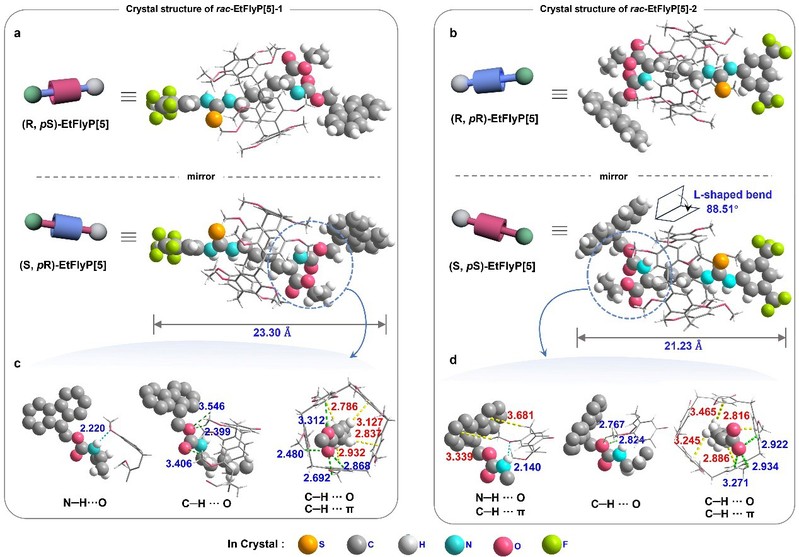 图3. rac-EtFlyP[5]-1和rac-EtFlyP[5]-2的晶体结构图。