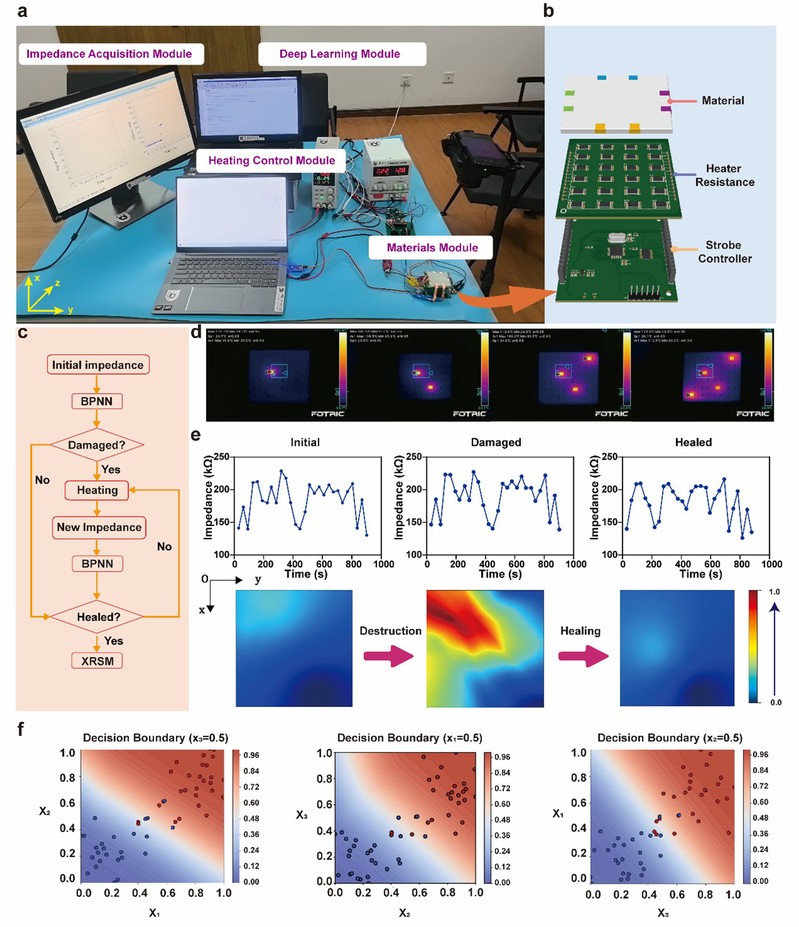 图3.基于阻抗测量和深度学习神经网络的损伤感知和愈合机制。