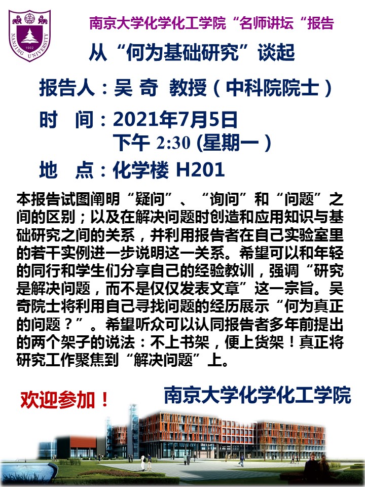 7月5日名师讲坛-吴奇教授:从“何为基础研究”谈起