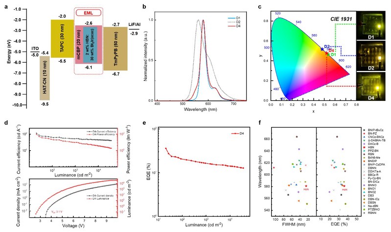 图4. 基于HBN分子的OLED器件性能