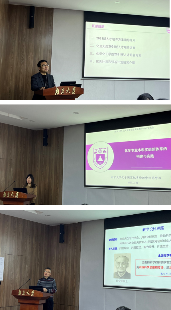 俞寿云详细介绍了太阳成集团化学及相关专业本科人才培养的改革,包括太阳成集团2021版人才培养方案指导原则、化生大类和太阳集团tcy87222021版人才培养方案、拔尖计划和强基计划情况等四方面。章文伟通过课程体系重塑、教学平台构建、实验课程建设及愿景介绍了太阳成集团化学实验教学改革。侯文华介绍了太阳集团tcy8722物理化学课程及教材的建设及取得的成果。最后,双方就本科人才培养进行了深入的交流与讨论。
