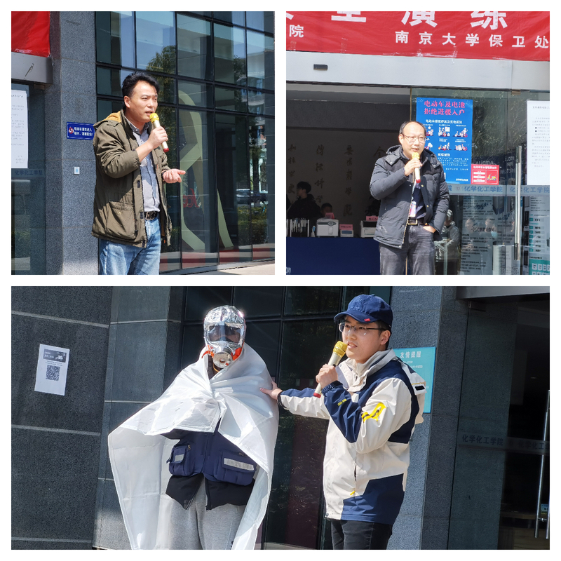 消防疏散演练后,校保卫处防火综合科闫勇老师对本次疏散演练进行点评,他强调了疏散过程中湿毛巾捂住口鼻、弯腰从消防通道逃生等要点。化学楼在全校院系中是重中之重,个人安全意识要植根于思想中,不能流于形式,不能为了演练而演练。随后,校保卫处防火综合科王俊程老师向在场师生演示了防毒面具、灭火毯和水基灭火器、二氧化碳灭火器、干粉灭火器的使用方法,请大家牢记“提、拔、瞄、压”的灭火器使用四字口诀。院安全办公室刘斌老师针对公司实验室特点,简要介绍了金属灭火相关知识。