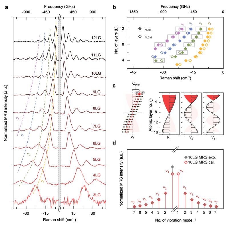 图2. 不同层数晶格振子的MRS测量与力学耦合效应的定量分析