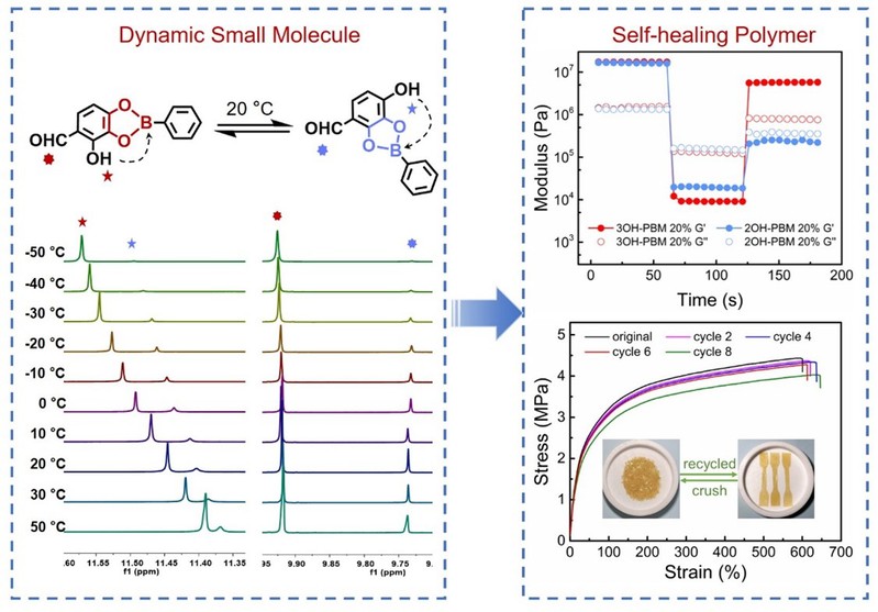 图1. 基于邻位羟基促进机制的硼酸酯及其动态高分子