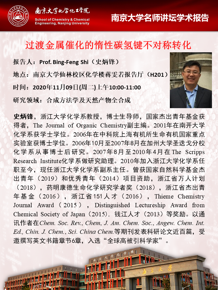 11月9日名师讲坛-史炳锋教授:过渡金属催化的惰性碳氢键不对称转化