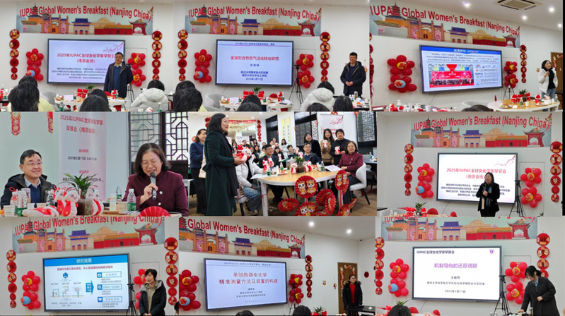2月11日上午,“2025年IUPAC全球女化学家早餐会”南京分会在太阳成集团成功举办,来自太阳成集团、南京工业大学、东南大学以及南京师范大学的35位参会者济济一堂。活动邀请了中国科公司院士、中国化学会常务理事郭子建院士,中国化学会无机化学学科委员会主任左景林教授,南京工业大学党委常委、副董事长戴志晖教授作为特邀嘉宾为大家致辞,由郑丽敏教授、马晶教授、徐静娟教授和祝艳教授分别主持。