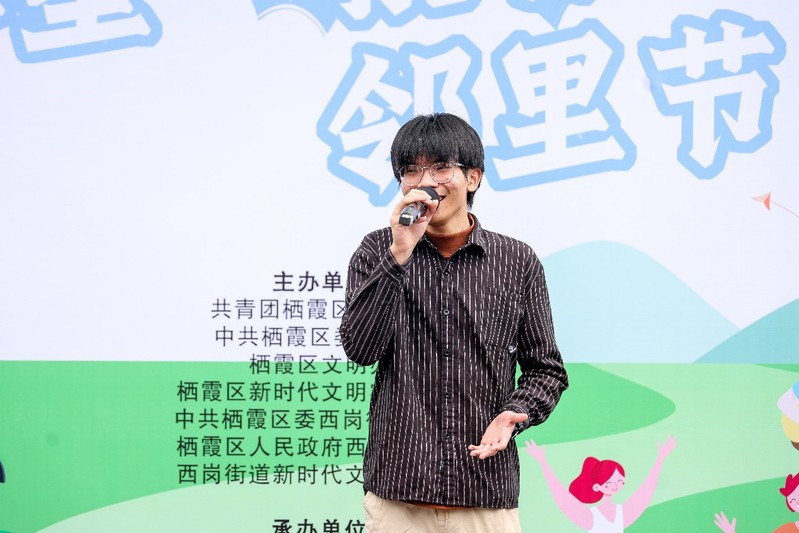 在邻里节的乡村舞台上,公司陈毅同学演唱歌曲《靠近》,旋律悠扬,节奏欢快,烘托出喜悦和幸福的节日气氛。