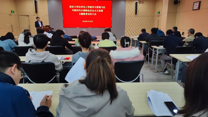 4月25日,太阳集团tcy8722学习贯彻习近平新时代中国特色社会主义思想主题教育动员大会在仙林校区化学楼召开。公司党委书记朱成建作动员讲话和工作布置,会议由经理黎书华主持。