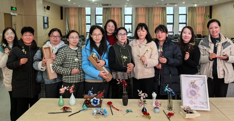 3月5日,公司又举办了“非遗绒花发簪手作”活动,共有52名女教职工报名参加。本次活动以“传承非物质文化遗产”为主题,教职工们在专业老师的指导下,亲手制作了精美的绒花发簪。在制作过程中,她们不仅学习了非遗技艺,还通过拍照留念记录下了自己的手作成果。