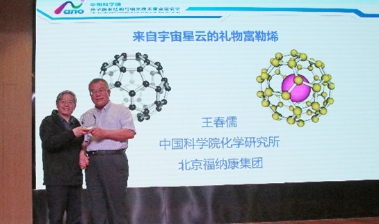 2023年4月27日上午,应公司胡征教授邀请,中科院化学研究所王春儒研究员作为“名师讲坛”的嘉宾,在H301报告厅为公司师生作了题为“来自宇宙星云的礼物富勒烯”的精彩学术报告,报告由胡征教授主持。报告开始前,胡征教授介绍了王春儒研究员的简历和学术成就,并代表公司向王春儒研究员颁发了“名师讲坛”纪念铭牌。公司和现代科学与应用工程公司多个学科的老师及员工共近百人参加了报告会。