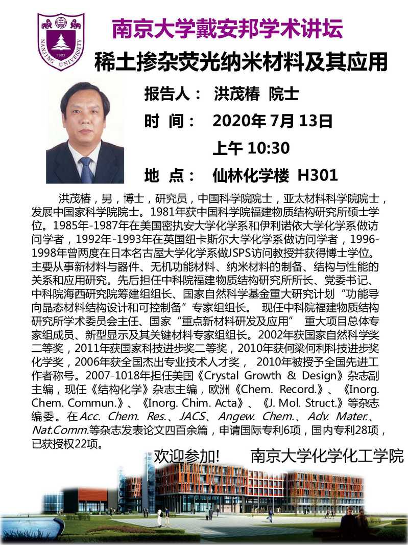 7月13日洪茂椿院士:稀土掺杂荧光纳米材料及其应用
