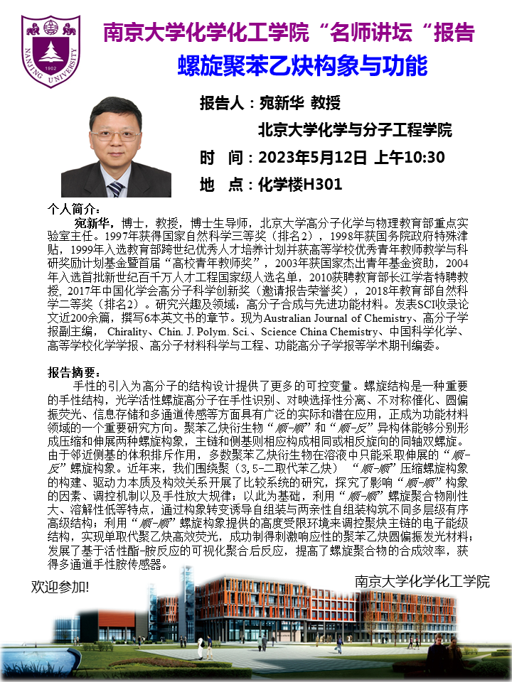 5月12日名师讲坛-宛新华教授:螺旋聚苯乙炔构象与功能