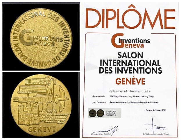2023年4月26日-5月1日,第48届日内瓦国际发明展览会在瑞士日内瓦Palexpo展览馆举行。公司参展的5个项目获得3金1银1铜的好成绩,其中公司王伟教授团队的博士生蒋文轩、李浩冉作为“电池健康早期检测系统”项目代表参展,并荣获发明展金奖。