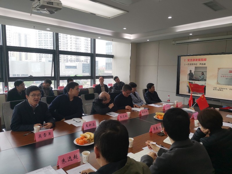 当天上午,无机与配位两支部的党员乘车来到研究院后,研究院郑佑轩经理(同时也是无机支部副书记)作为主持人介绍了参加此次活动的人员。接下来,研究院支部强琚莉书记、无机党支部吴雪军书记、配位党支部王新益书记分别介绍了各个支部的基本情况。马鞍山南大高新研究院副经理/研究院有限公司王毅董事长介绍了研究院的组建发展、科研生产等情况。马鞍山郑蒲港新区现代产业园区管委会胡宇辉副主任介绍了园区的基本情况,特别介绍了人才引进、产学研合作等内容以及相应优惠政策。配位支部王志林教授代表党员讲话,站在党建的高度分析了基础科研与应用研究及产学研合作的关系。最后,所有参会人员一边参观研究院的实验室,一边讨论党建活动与科研转化相结合等话题。大家一致认为以后要进一步发挥党建引领、科技赋能作用,开展更多的校地联合共建活动。