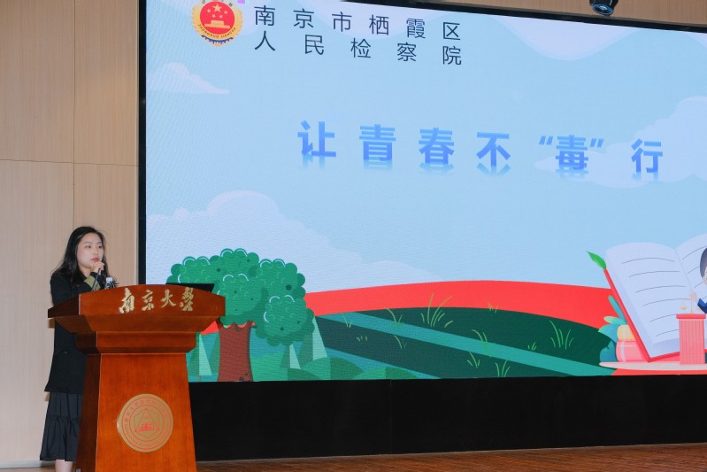 陈茜茜围绕“让青春不‘毒’行”为师生讲述如何远离毒品。她首先介绍了毒品的种类、危害,并介绍了“聪明药”、“奶茶粉”、“开心水”等新型毒品伪装形式。随后通过讲述身边发生的真实青少年吸毒贩毒案例,提醒同学们警惕毒品危害,并为大家介绍远离毒品的注意事项。