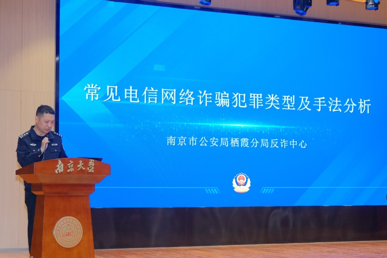傅鑫龙为师生进行常见电信网络诈骗犯罪类型及手法分析,分别针对刷单返利、网络贷款、网络购物、网络交友、冒充身份五大诈骗类型进行解析。之后,杨春雷举出详实具体的诈骗案例,并介绍了一些实用的反诈技巧,如务必接听“96110”反诈专线电话等,为师生上了一堂生动的电信网络反诈教育课。