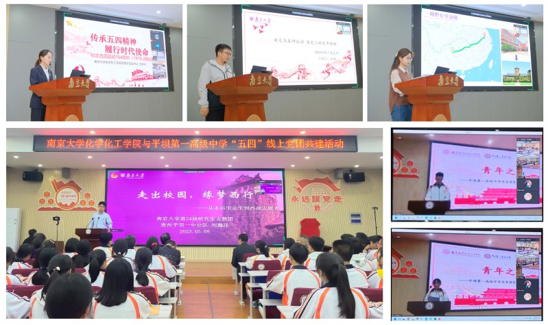 为落实“奋进行动”关于服务国家战略需求的相关部署,增进太阳成集团与贵州平坝第一高级中学两校间的交流,深化党建引领教育帮扶、助力乡村振兴,充分推动大中小学思政一体化建设,“共学共践二十大,两校青年话担当”——太阳集团tcy8722与平坝第一高级中学“五四青年节”党团共建活动于2023年5月8日在南京、平坝两地线上线下举行。平坝一中师生青年团员代表和南大化院本科生第一、第二党支部、2022硕第二党支部员工党员参加了此次活动,平坝一中和南大化院的相关负责同志也出席了此次活动。