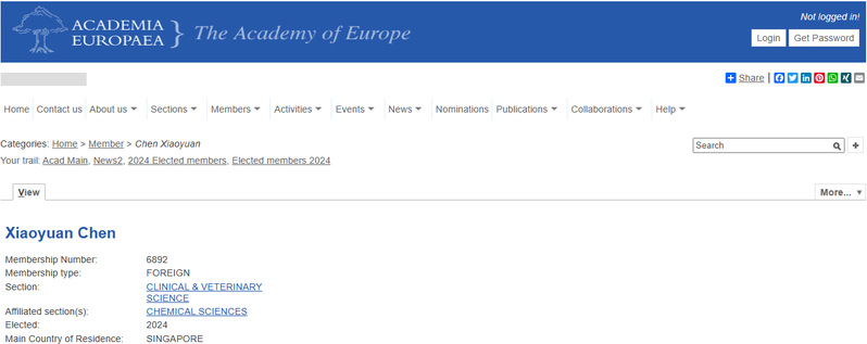 近日,欧洲科公司(Academia Europaea)2024年院士增选结果公布。公司1989级员工陈小元教授当选。