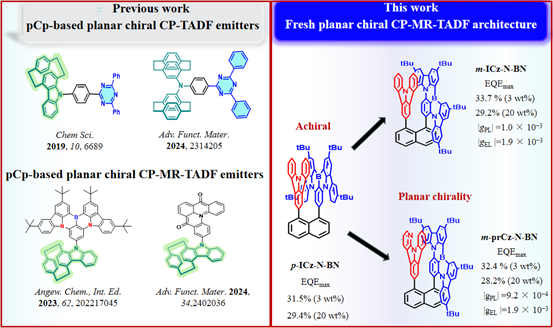 2. 开发了新型面手性CP-MR-TADF材料