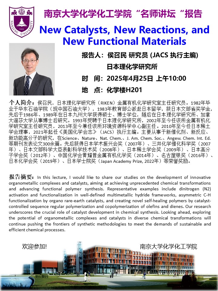 4月25日名师讲坛-侯召民研究员:New Catalysts, New Reactions, and New Functional Materials