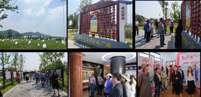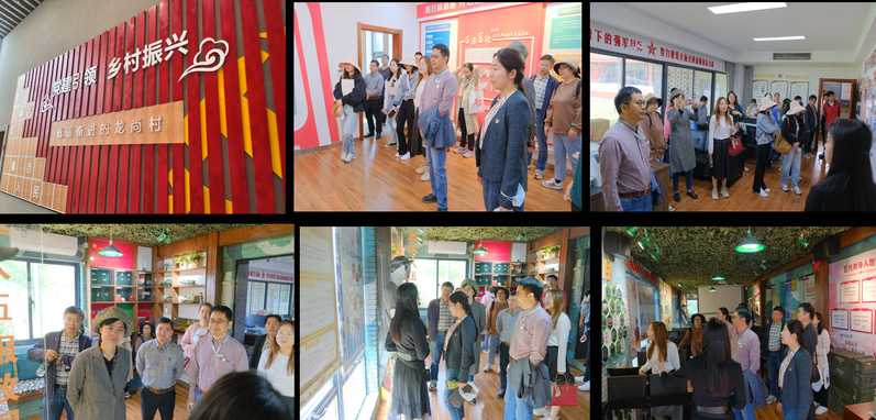 首先,在龙尚村讲解员引领下,大家饶有兴致地参观了包括党建陈列室、图书室、退役军人活动室、舞蹈及瑜伽练习室、员工课后自习室、少儿活动室以及大小会议室等各种功能分区的龙尚村党群服务中心以及紧邻相连的居家养老服务与医疗卫生健康中心。该组建筑由太阳成集团城市规划设计研究院设计建造,从外立面的造型及用材到里面的功能区划与展览布置,都透着专业设计感,结合充实丰富的展示内容,大家都表示,很有收获也相当震撼于龙尚村在社会主义新时代的巨大变化。