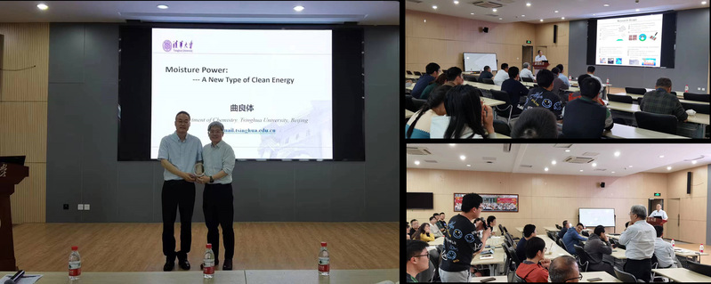 2023年5月12日下午两点,应公司胡征教授邀请,清华大学化学系曲良体教授作为“名师讲坛”的嘉宾,在H201为公司师生作了题为“自发湿气发电效应”的精彩学术报告,报告由胡征教授主持。在报告开始之前,胡征教授介绍了曲良体教授的简历和学术成就,并代表公司向曲良体教授颁发了“名师讲坛”纪念铭牌。公司多个学科的老师及员工共近百人参加了报告会。