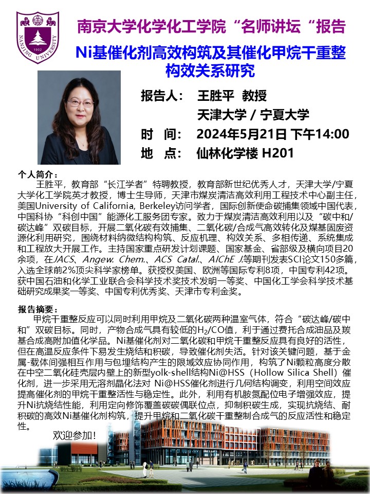 5月21日名师讲坛-王胜平教授:Ni基催化剂高校构筑及其催化甲烷干重整构效关系研究