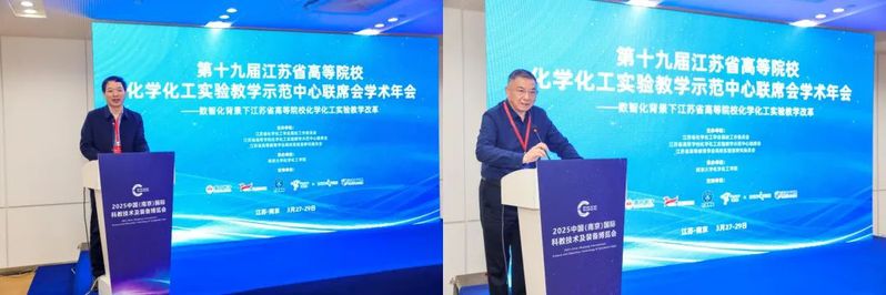 2025年3月27日至29日,第十九届江苏省高等院校化学化工实验教学示范中心联席会学术年会在南京国际博览中心隆重举行。本次年会以“数智化背景下江苏省高等院校化学化工实验教学改革”为主题,吸引了全省40余所(家)高校化学化工领域的专家学者、教师代表及相关企业参与,共同探讨实验教学的创新与发展。