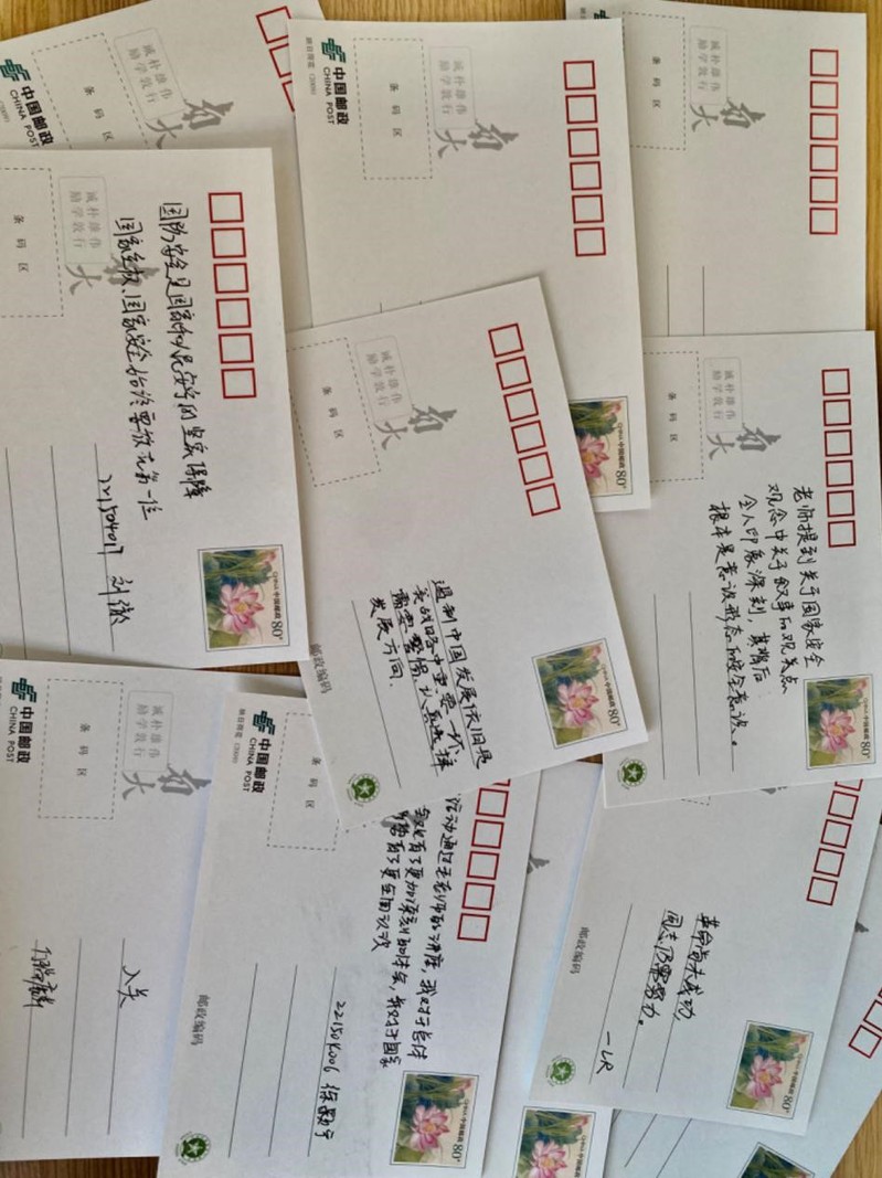 在互动环节,毛维准教授与在场同学互动交流详细回答了大家关心的中美大国关系、世界科技竞争、国家安全与经济发展等问题,并为同学们签名赠送他参与编著的《大国的国际秩序观念与战略实践大国的国际秩序观念与战略实践》。同学们纷纷将听课后的感受写在面前的明信片上。