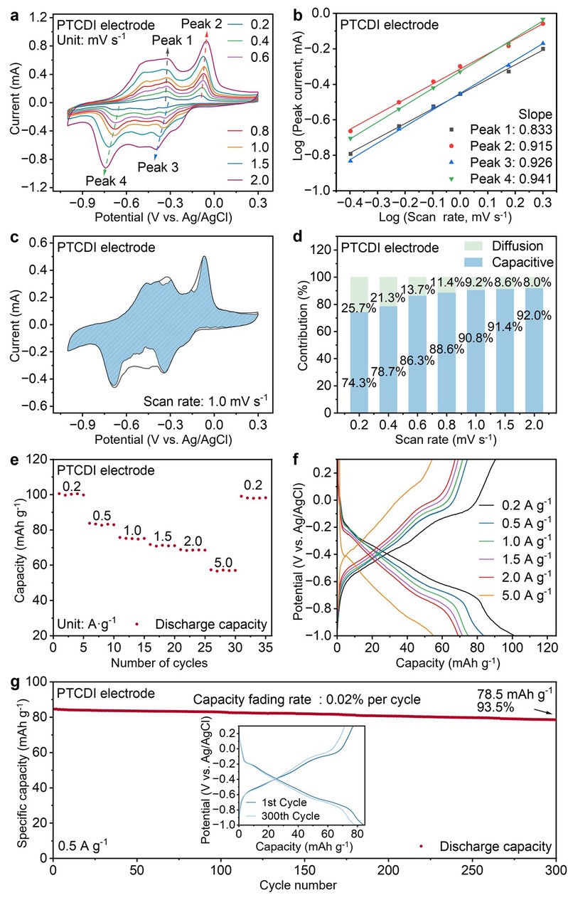 图3. PTCDI负极的电化学性能研究。
