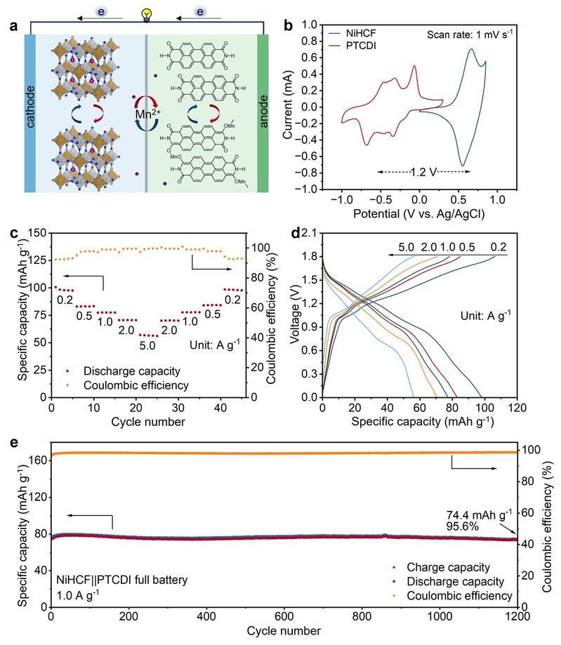 图5. NiHCF||PTCDI锰离子电池的性能研究。