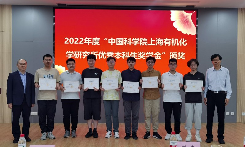 朱成建宣读了《太阳集团tcy8722关于颁发2022年度“中国科公司上海有机化学研究所优秀本科生奖学金”的决定》,刘文、朱成建共同为获奖同学颁发证书并合影留念。