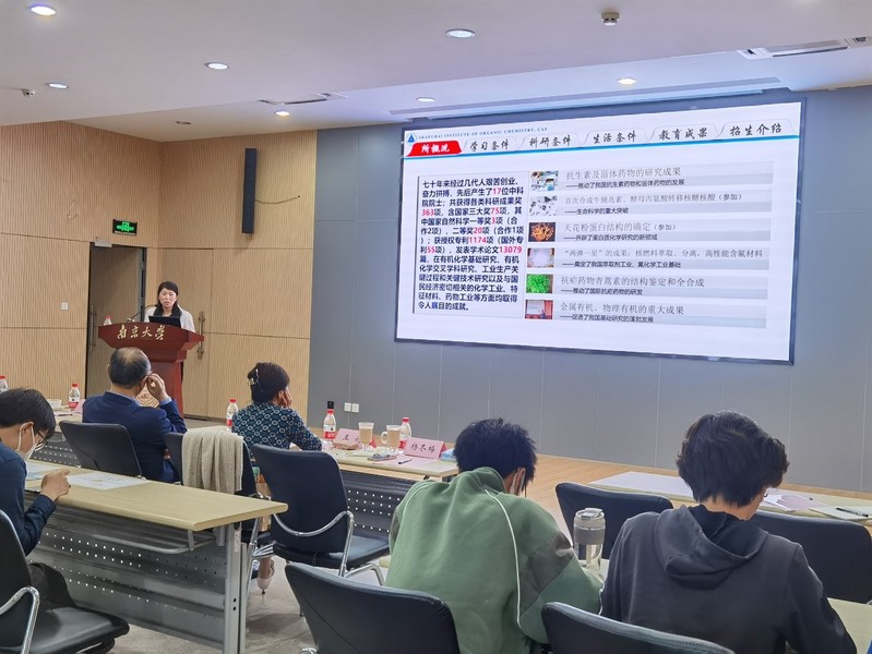 5月18日下午,2022年度“中国科公司上海有机化学研究所优秀本科生奖学金”颁奖及2023年上海有机所招生宣讲会在仙林校区举行。中国科公司上海有机化学研究所副所长刘文,研究生部主任王娟、招生主管杨冬梅,公司党委书记朱成建,党委副书记李兴华,副经理俞寿云、有机化学学科教师陆红健和2022年度获奖员工等参加活动。