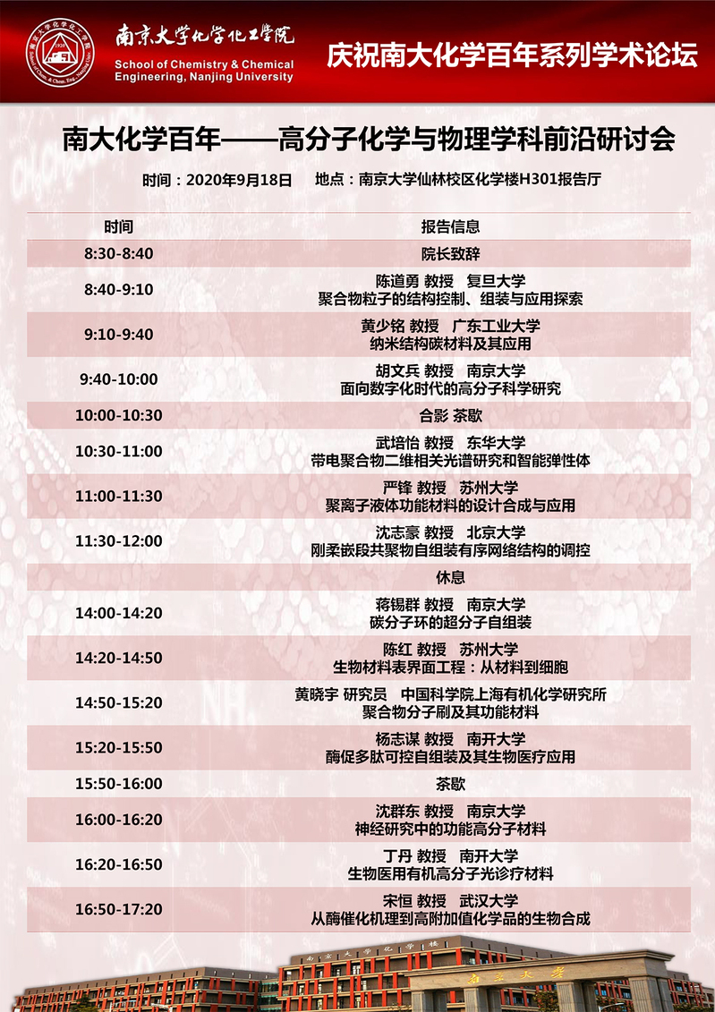 9月18日庆祝南大化学百年系列学术论坛-高分子化学与物理学科前沿研讨会