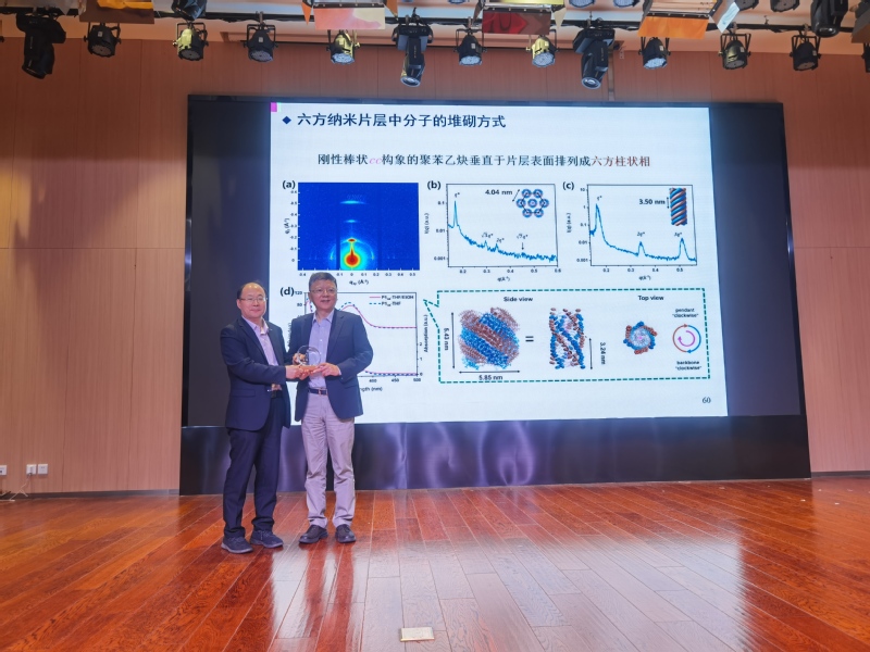 报告中,宛新华教授介绍了近年来团队围绕聚(3.5-二取代苯乙炔)“顺-顺”压缩螺旋构象的构建、驱动力本质及构效关系所开展的研究,探究了影响“顺-顺”构象的因素、调控机制以及手性放大规律。宛新华教授的报告极具启发性,在讨论环节中,公司师生踊跃提问,互相进行了热烈交流。