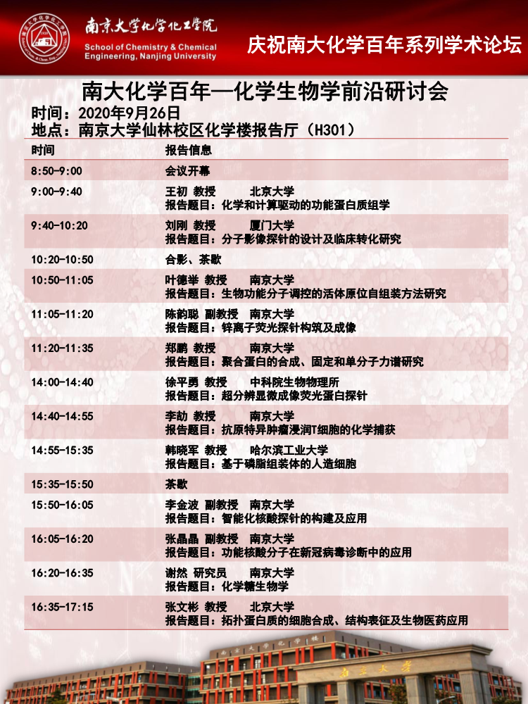 9月26日庆祝南大化学百年系列学术论坛-化员工物学前沿研讨会