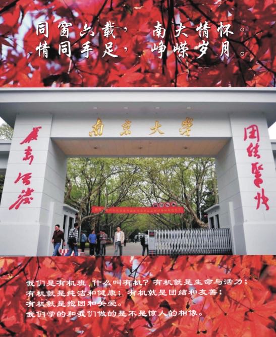 金陵红枫,世纪绚丽。励精图治,桃李满园。61级分析班全体同学热烈恭贺南大化院百年华诞。