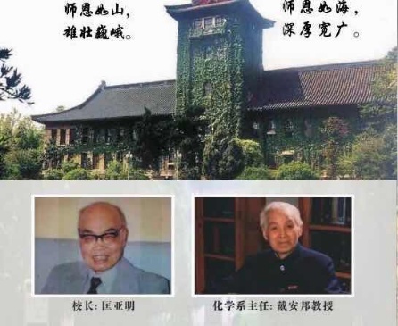 我们无比怀念感恩为祖国化学事业作出重大贡献的我们无机化学泰斗戴安邦教授以及公司化学界老前辈:高济宇、李方训、倪则勋、裘家奎等和各位老师,他们的崇高品德、奉献精神和渊博学识,激励着一代又一代学子砥砺前行。