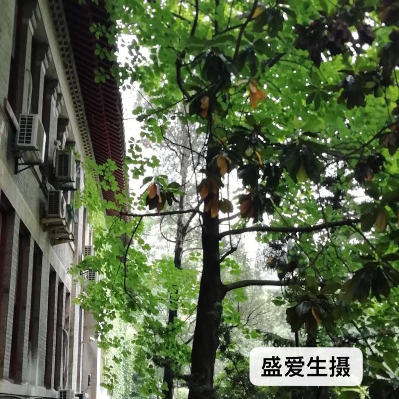 西大楼东侧,在茂密的松柏丛中耸立着一株参天大树,广玉兰。远远望去,犹如巾帼迎风而立,不矫柔、不造作,飒飒之气,不让须眉。又像一代才俊,和戴老隔窗相望,师恩如海,终生难忘,莘莘学子终身相随。