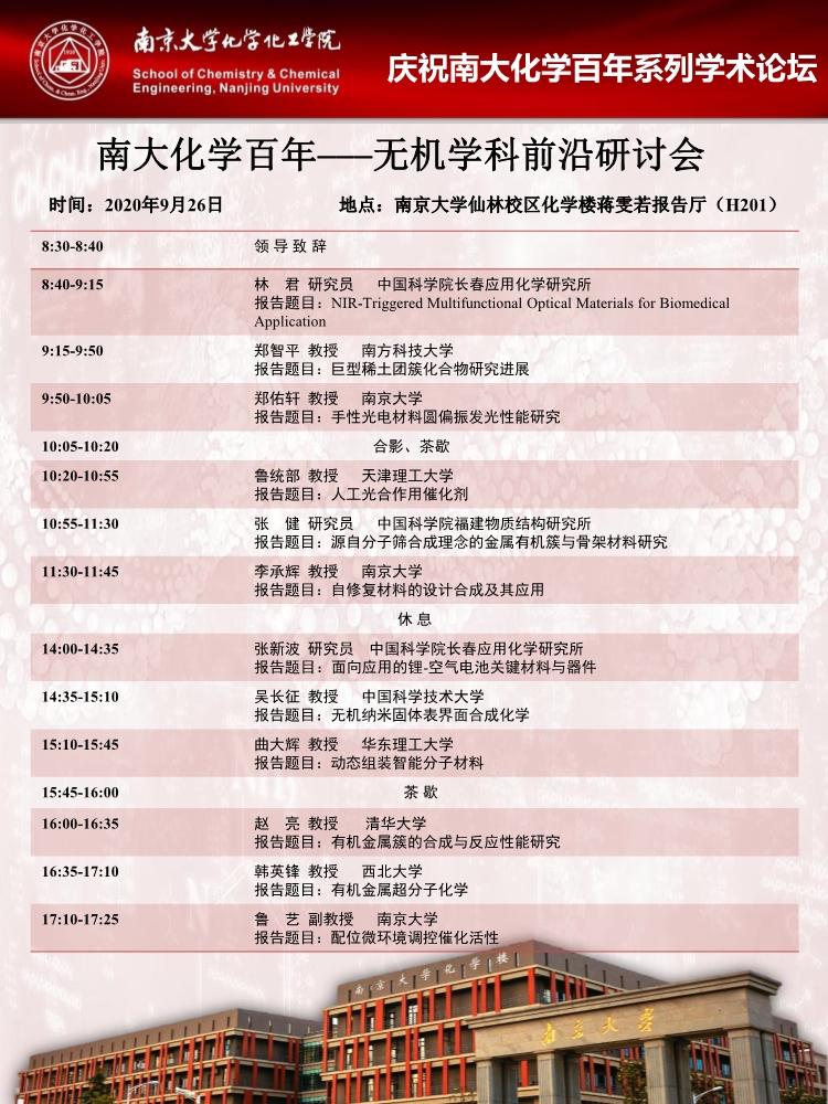9月26日庆祝南大化学百年系列学术论坛-无机学科前沿研讨会