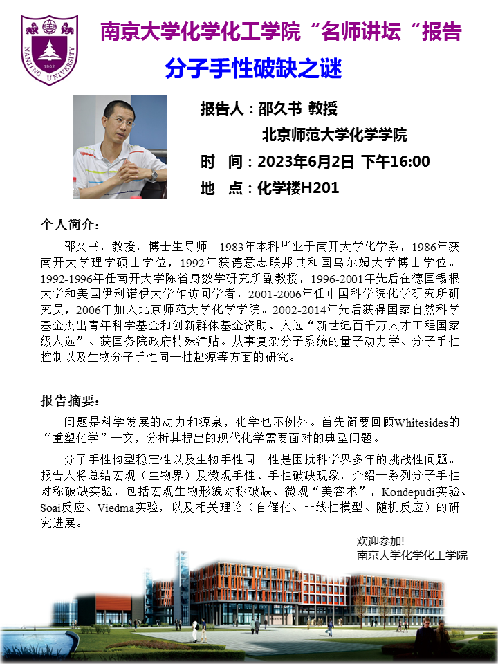 6月2日名师讲坛-邵久书教授:分子手性破缺之谜