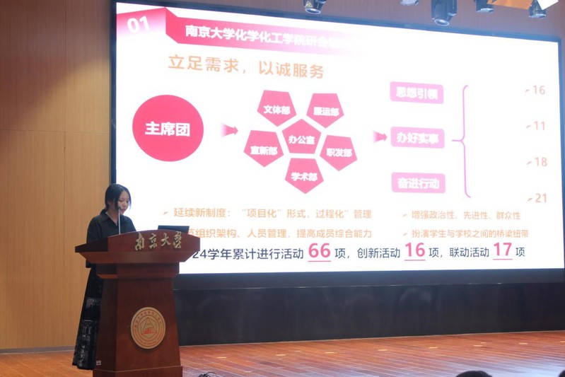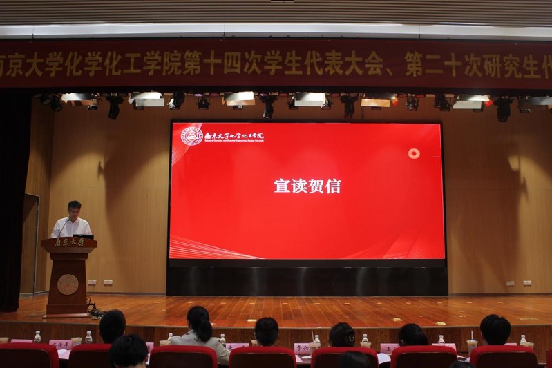 大会开始,高俊丰代表校研会宣读贺信,校研究生会充分肯定了过去一年中化院研会取得的成绩,并指出在今后的工作中,校院两级研究生会可以继续增进沟通、加强协作,深化落实“奋进行动”,推出更多精品项目。
