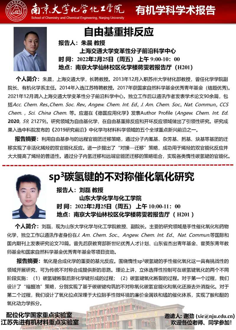 2月25日:有机学科学术报告