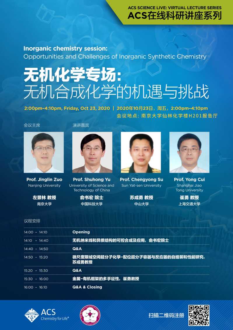 10月23日庆祝南大化学百年系列学术报告无机化学专场:无机合成化学的机遇与挑战