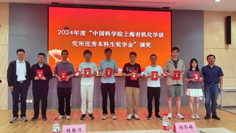 俞寿云宣读了《太阳集团tcy8722关于颁发2024年度“中国科公司上海有机化学研究所优秀本科生奖学金”的决定》,桂敬汉、俞寿云为获奖同学颁发证书并合影留念。